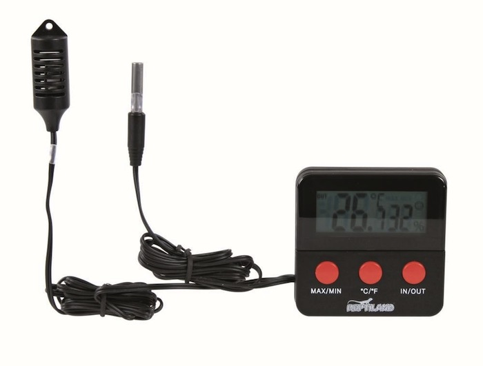 Ce thermo-hygromètre digital avec sonde de marque Reptiland vous permet de surveiller grâce à un unique appareil la température et l'humidité de l'air ambiant du terrarium de votre iguane.